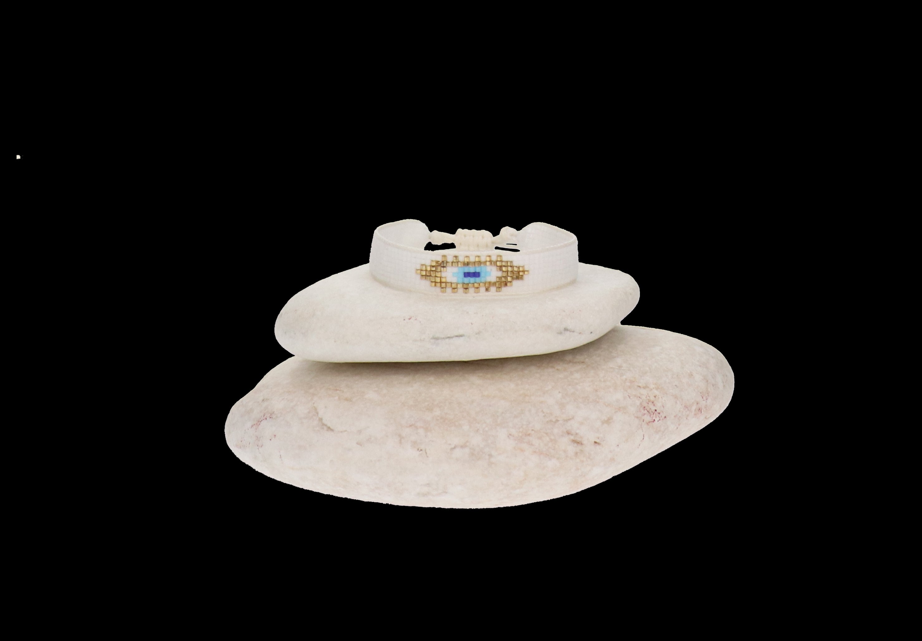 Azade Βραχιόλι Λευκό με Χρυσό Μάτι