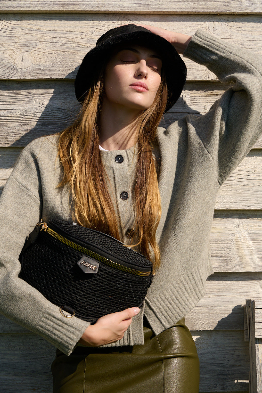 Διαθέτει ρυθμιζόμενο ιμάντα για να φοριέται με άνεση στη μέση (belt bag) ή χιαστί (crossbody), καθώς και ασφαλές κλείσιμο με εντυπωσιακό χρυσό φερμουάρ.