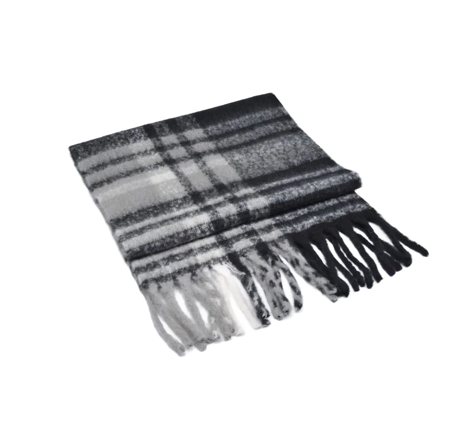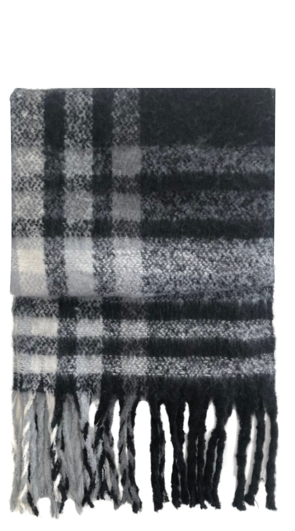 Απαλό και ζεστό κασκόλ σε γκρι αποχρώσεις με καρό σχέδιο. Ζεστό και ευχάριστο στην αφή, ιδανικό για τις κρύες μέρες του χειμώνα. Διαθέτει κρόσσια στο τελείωμα και προσθέτει cozy στυλ σε κάθε εμφάνιση.