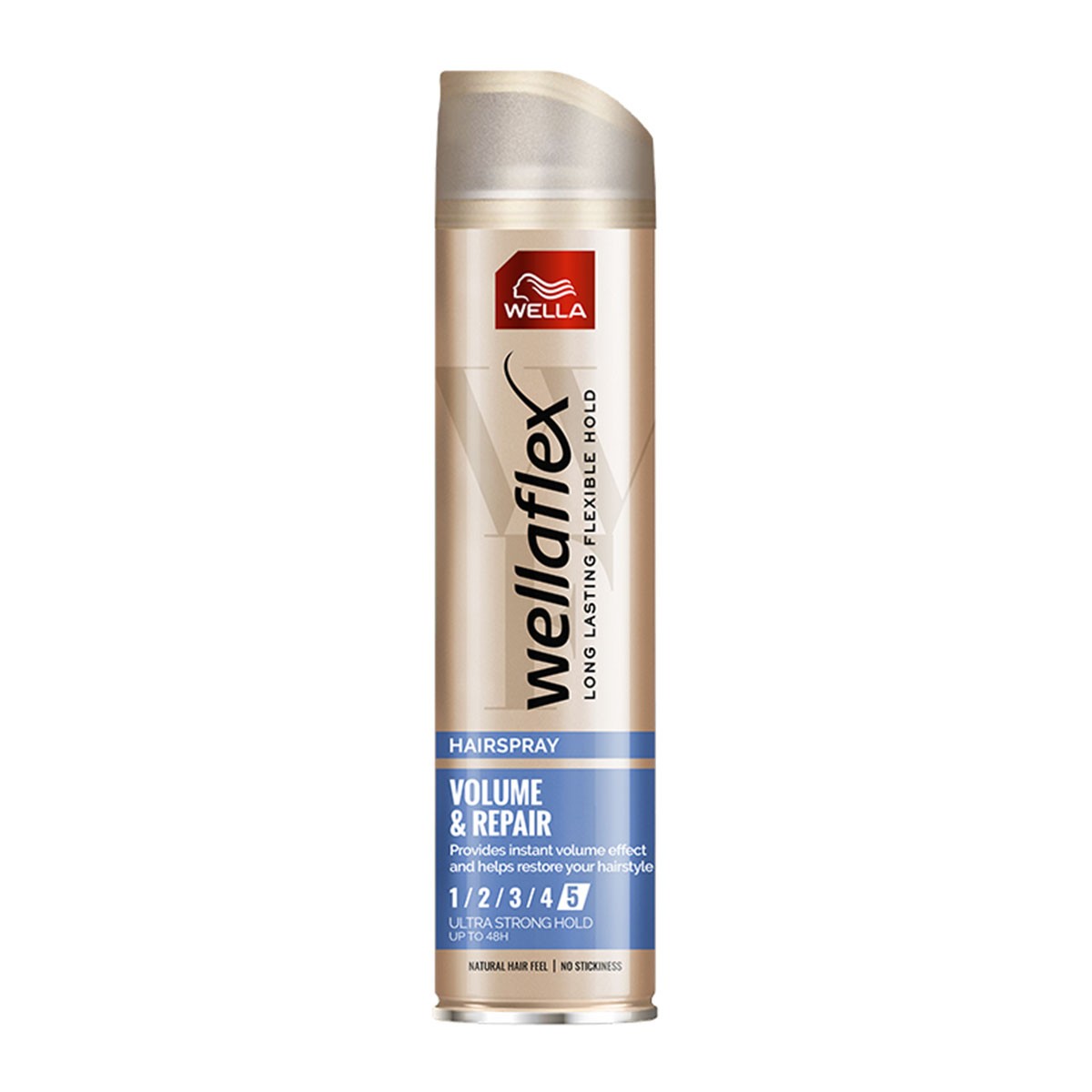 Αδράξτε κάθε στιγμή με απόλυτη αυτοπεποίθηση και βεβαιωθείτε ότι η εμφάνισή σας είναι πάντα άψογη, χάρη στα προϊόντα styling Wellaflex. Δημιουργημένο για να ενισχύσει τη φυσική σας ομορφιά και να τονώσει το ατομικό σας στυλ, η λακ μαλλιών Wellaflex Volume & Repair δίνει όγκο και βοηθά στην αποκατάσταση της φυσικής όψης και ομορφιάς των μαλλιών σας. Βολικό στην εφαρμογή και εύκολο στο χτένισμα, το Wellaflex Volume & Repair είναι μια τέλεια λύση για γρήγορη διόρθωση του styling σας. Βοηθά επίσης στην προστασία από την υπεριώδη ακτινοβολία, έτσι ώστε τα μαλλιά σας να φαίνονται όμορφα, φυσικά και υγιή κάθε μέρα.