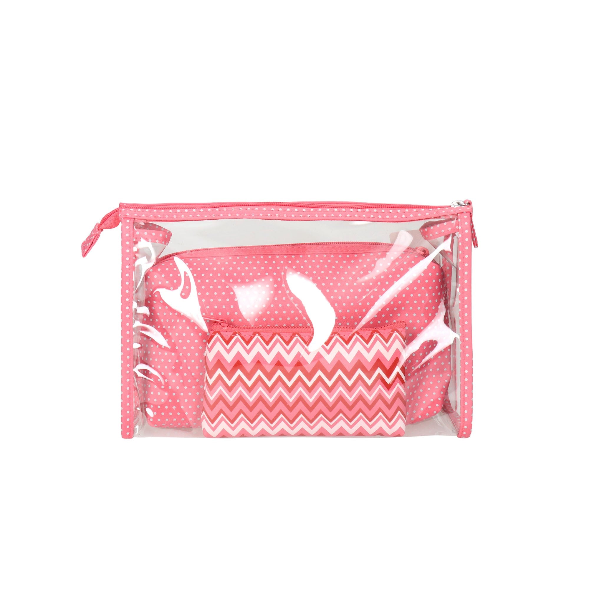Κομψά γυναικεία νεσεσέρ, σετ 3 τεμαχίων σε ροζ απόχρωση με μοτίβα. Ανθεκτικά και εύχρηστα, ιδανικά για καλλυντικά, αξεσουάρ ή χρήματα.