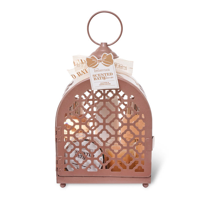 This beautiful reusable lantern contains a body wash, foam bath, hand cream, body lotion and an orange and cedarwood scented candle.
