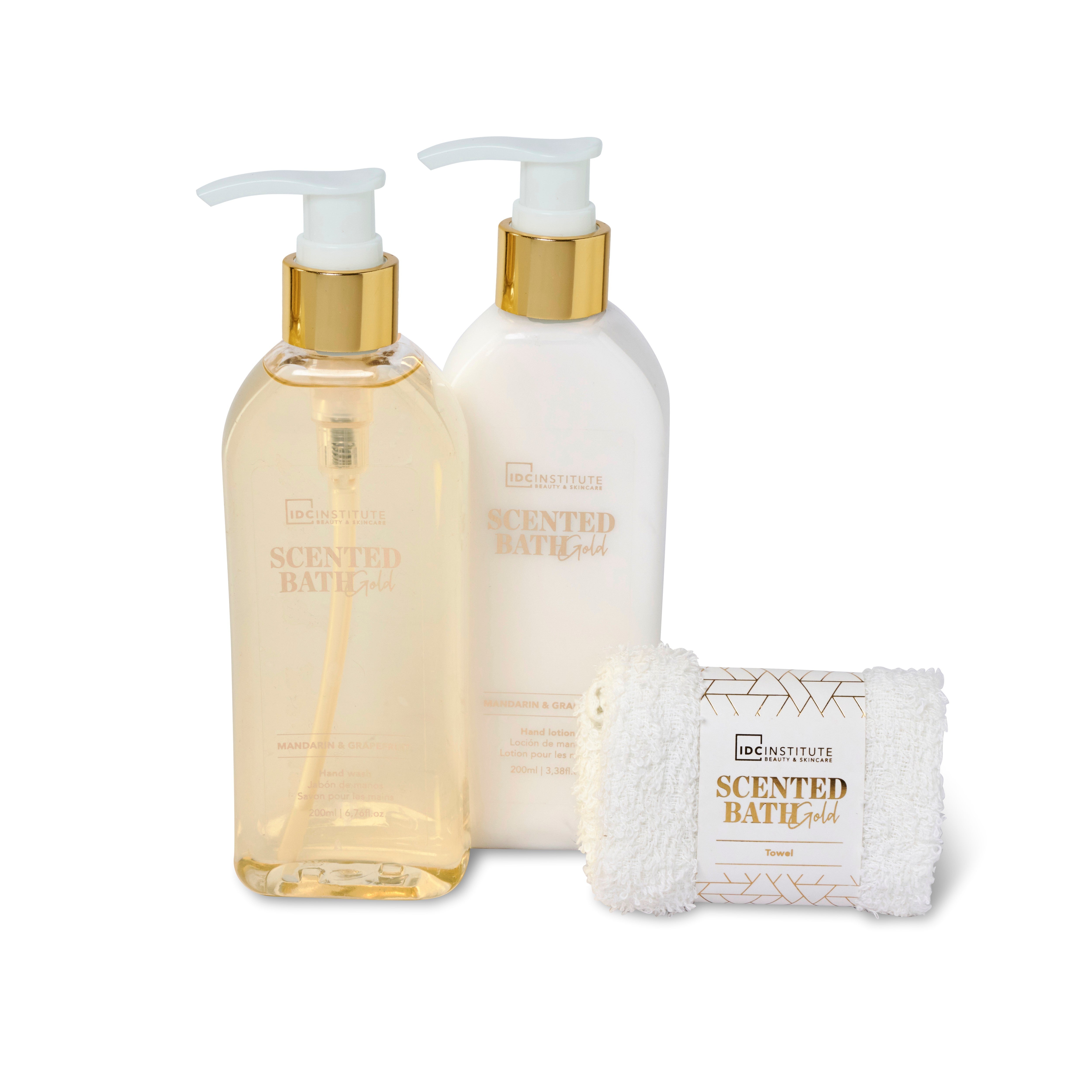 IDC Institute Scented Gold Hand Set 3 pcs 200ml Hand Wash, 200ml Hand lotion, Towel
