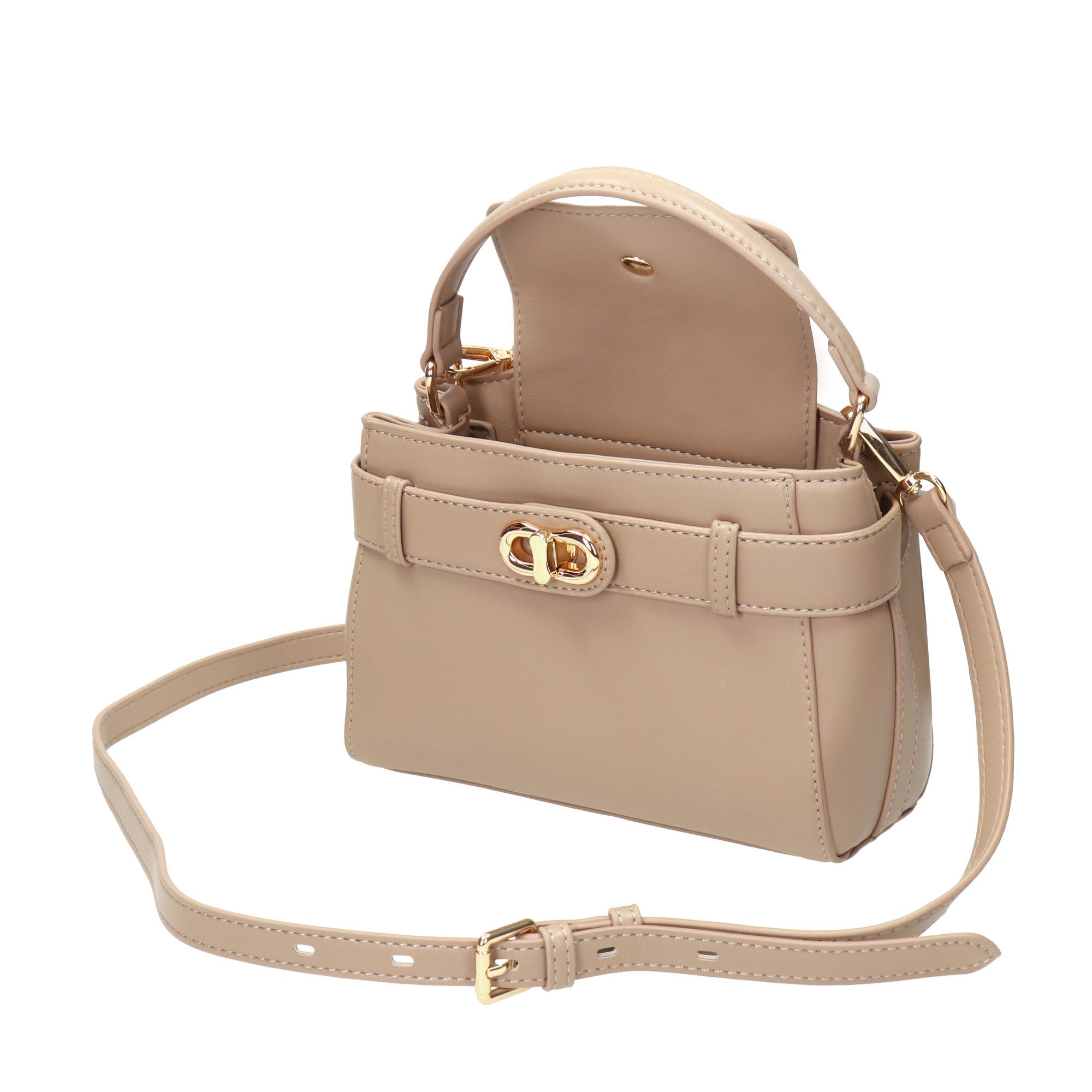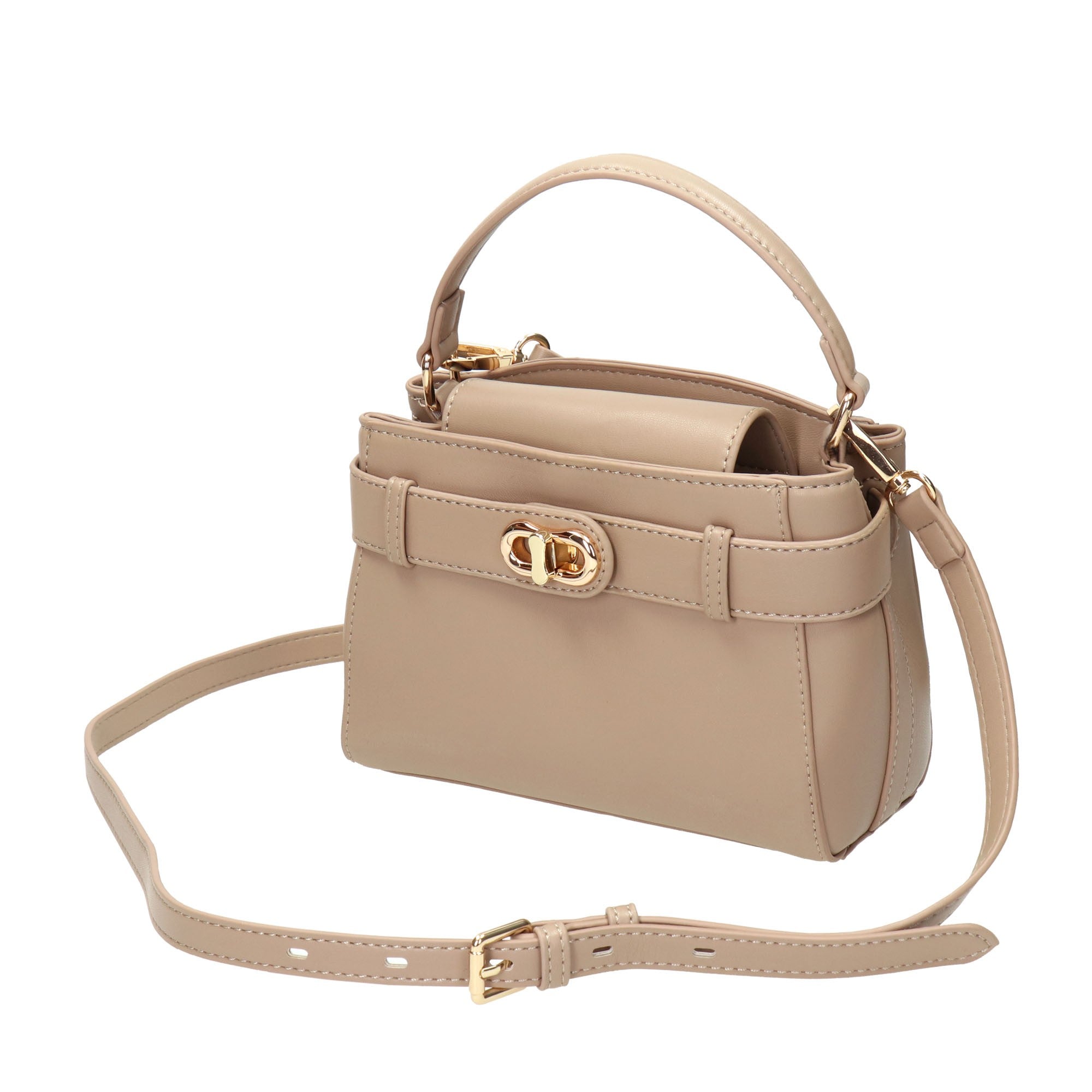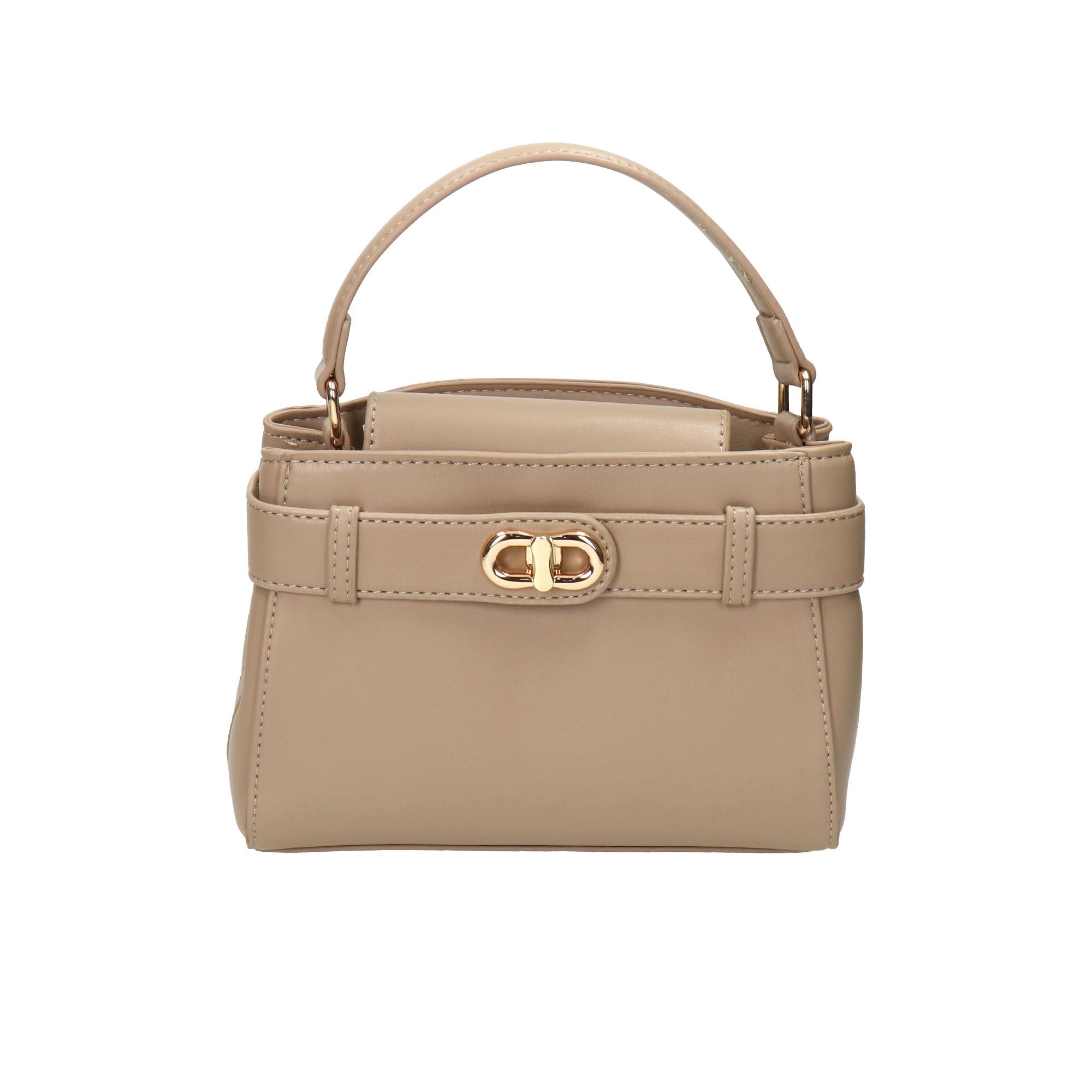 Τσάντα μινι top handle taupe, από μαλακό συνθετικό δέρμα .Κομψό σχέδιο με ζώνη και επιχρυσωμένο μεταλλικό κούμπωμα .Ευρύχωρο εσωτερικό με ενιαίο χώρο, με υφασμάτινη επένδυση με logo και τσέπη που κλείνει με φερμουάρ και επιπλέον ανοιχτή τσέπη. Συνοδεύεται από αποσπώμενο λουράκι για να φορεθεί και χιαστί. Με προστατευτική θήκη.