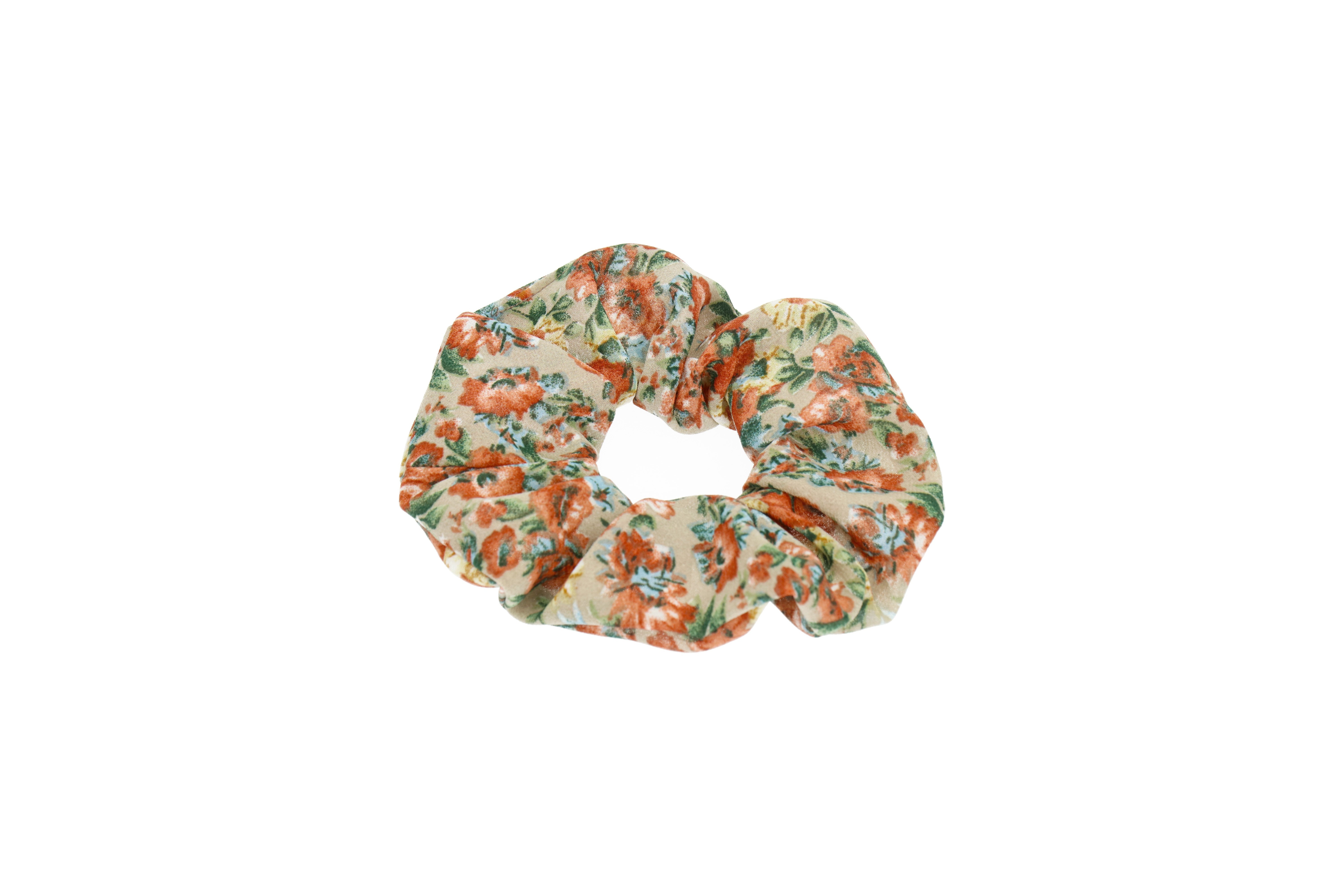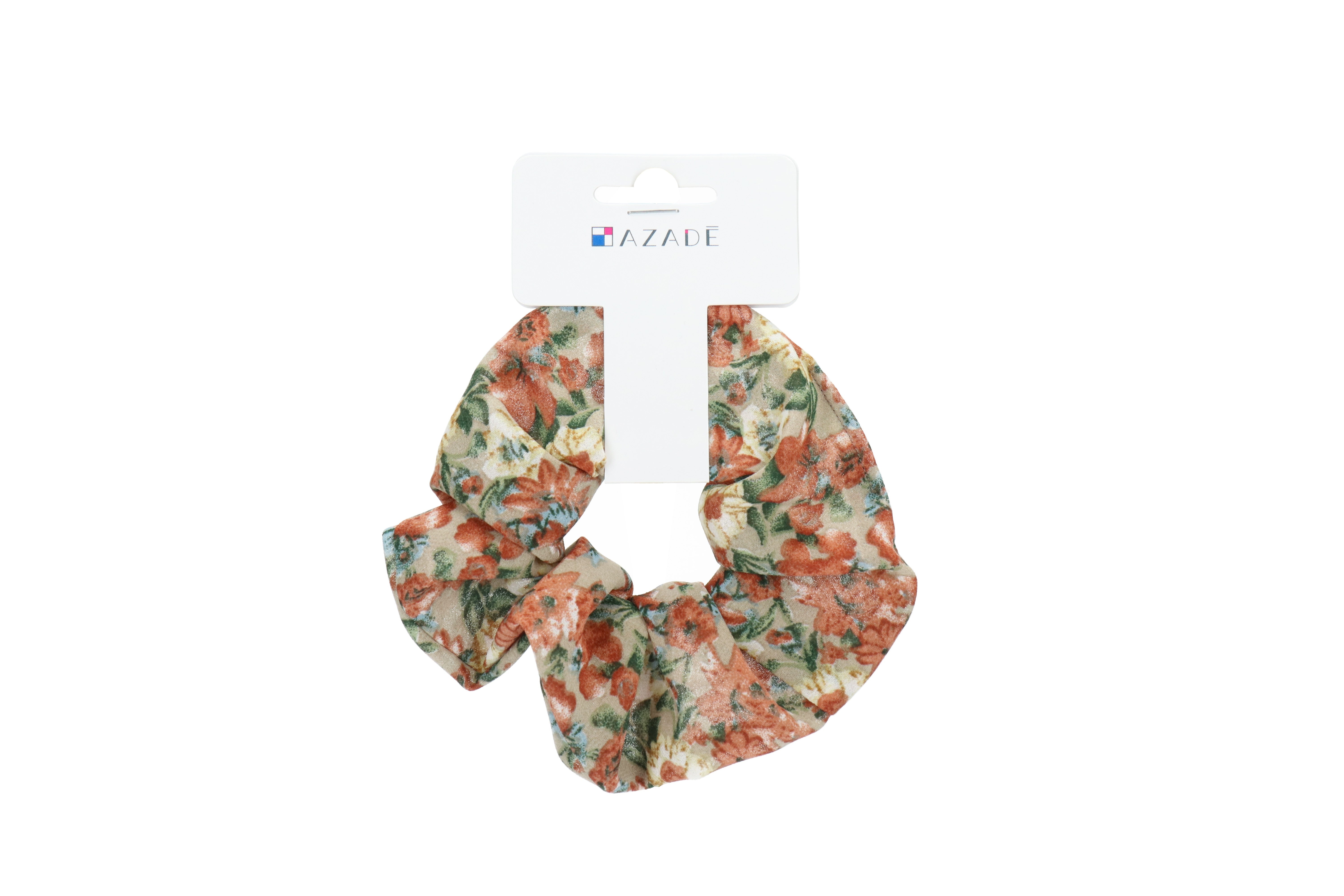 Scrunchie μαλλιών με floral σχέδιo, σε πορτοκαλί απόχρωση.