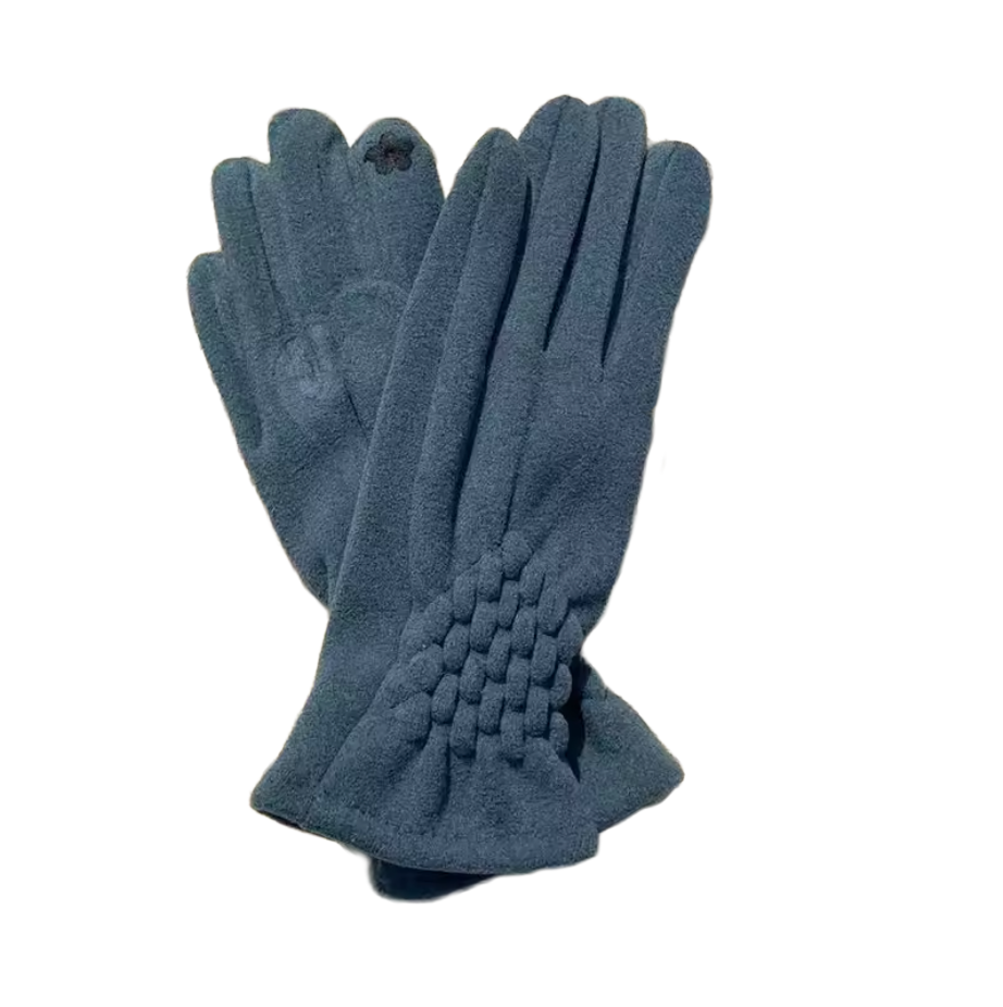 Κομψά γυναικεία γάντια σε σκούρο μπλε χρώμα με διακοσμητική πλέξη στο πάνω μέρος. Κατασκευασμένα από μαλακό και ζεστό ύφασμα, προσφέρουν άνεση και στυλ στις χειμερινές σας εμφανίσεις. Κατάλληλα για καθημερινή χρήση.