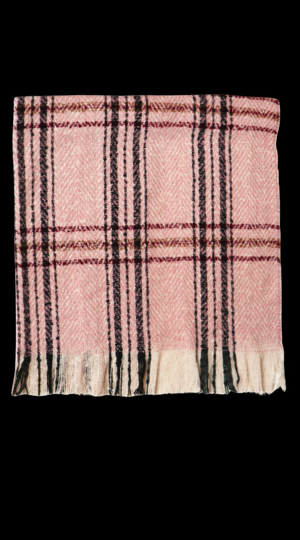 Φουλάρι καρό ροζ με ξέφτια στις άκρες Mε υπέροχη απαλή υφή.