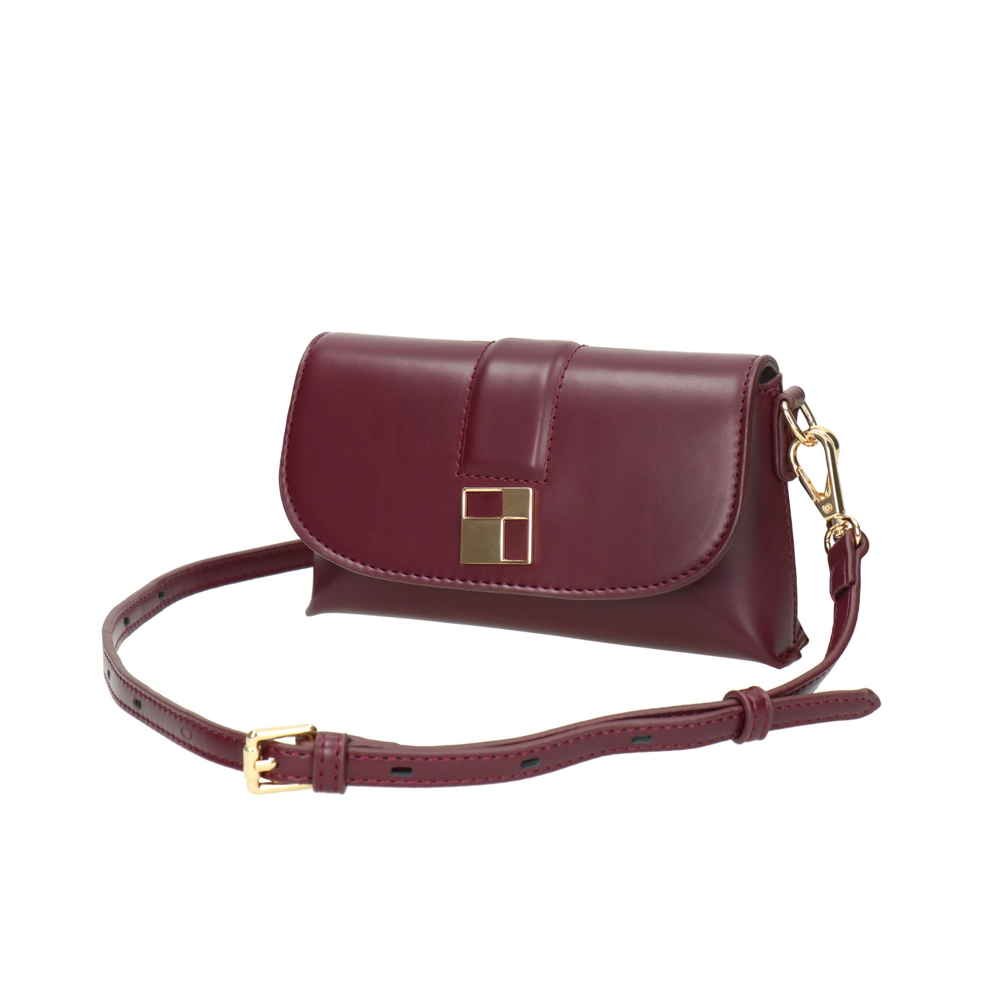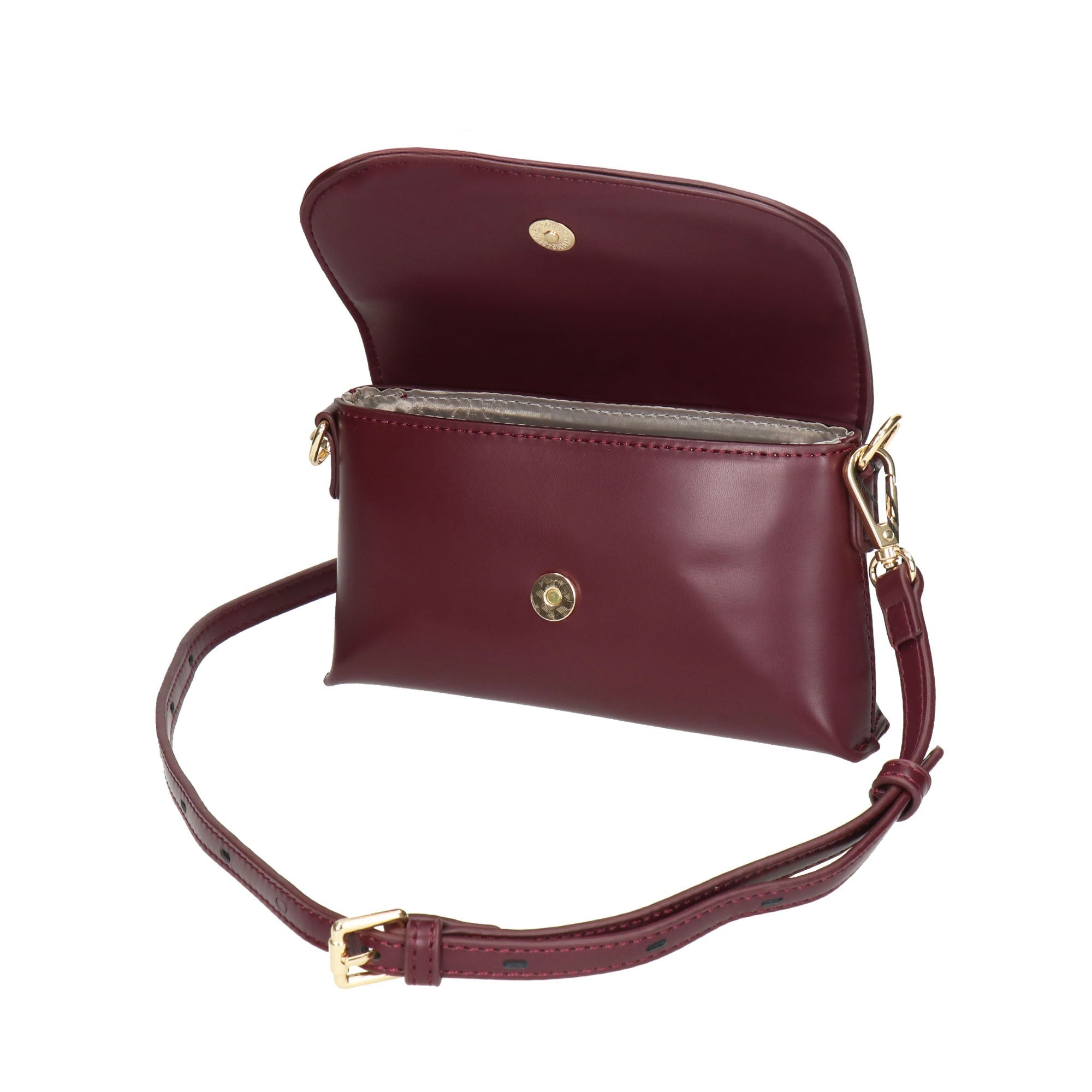 Τσάντα μικρή χιαστί βυσσινί, με μαλακό συνθετικό δέρμα. Κλείσιμο με καπάκι και signature logo μαγνητικό κλιπ. Εσωτερικά ενιαίος χώρος με υφασμάτινη επένδυση με logo και τσέπη που κλείνει με φερμουάρ και επιπλέον ανοιχτή τσέπη. Συνοδεύεται από 2 εναλλακτικά λουράκια, ένα με αλυσίδα και ένα δερμάτινο λουράκι .Με προστατευτική θήκη.