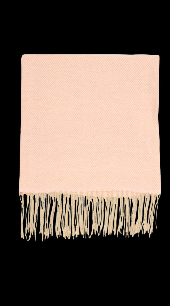 Κλασικό και ζεστό πλεκτό κασκόλ/σάλι σε απαλό ροζ χρώμα. Μεγάλο μέγεθος και μαλακή υφή. Ιδανικό για να φορεθεί ως σάλι ή κασκόλ.