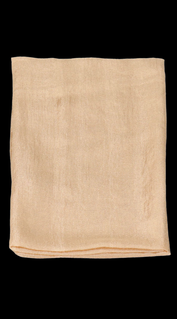 Λεπτό βραδινό φουλάρι σε χρυσό χρώμα, με see-through υφή που χαρίζει διακριτική λάμψη και κομψότητα. Ιδανικό για να ολοκληρώσει το βραδινό σας look, προσθέτοντας μια αέρινη και σικ πινελιά. Μπορεί να φορεθεί γύρω από τον λαιμό, ριγμένο στους