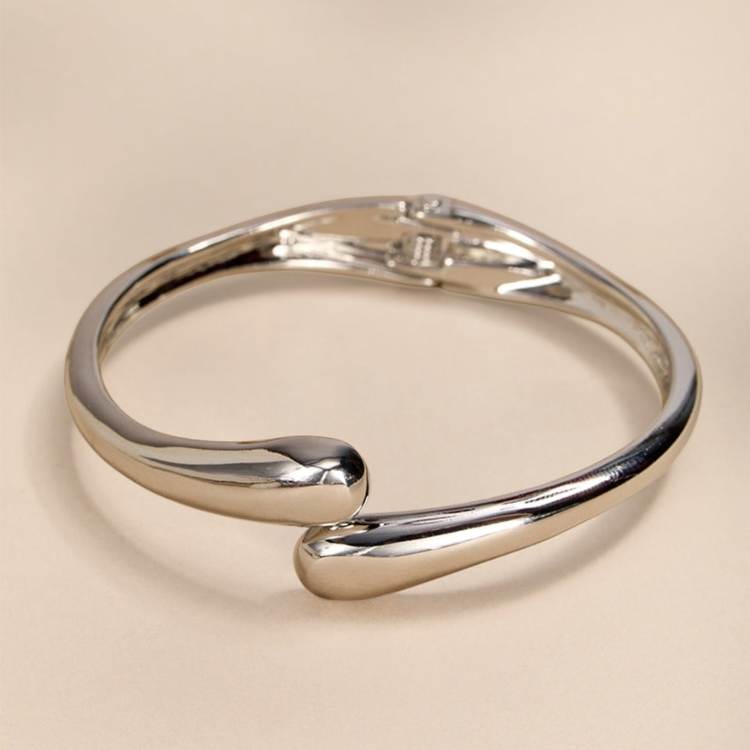 Μια λεπτή χειροπέδα σε ασημί χρώμα με μίνιμαλ και σύγχρονο σχεδιασμό. Διαθέτει ανοιχτό τελείωμα με στρογγυλεμένες άκρες επιτρέποντας την εύκολη εφαρμογή στον καρπό.