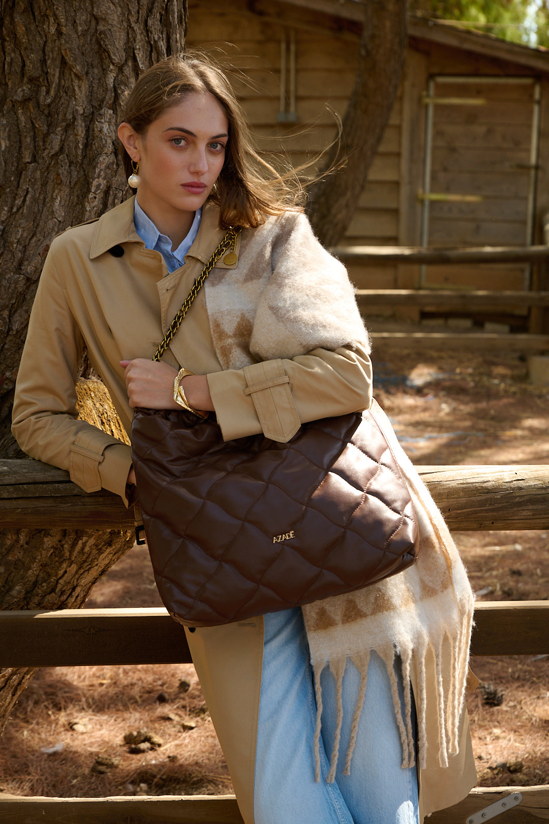 Απαλή καπιτονέ τσάντα τύπου shopper σε καφέ απόχρωση, με φουσκωτή υφή και κομψή μεταλλική αλυσίδα. Ευρύχωρη και ελαφριά, ιδανική για καθημερινή χρήση ή πιο casual chic εμφανίσεις.